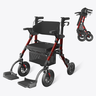 Klappen Sie einfach die Rückenlehne hoch, und der Rollator verwandelt sich in einen komfortablen Rollstuhl mit stabilem Sitz und zuverlässiger Unterstützung, ideal für den Gebrauch zu Hause, auf Reisen und in der Rehabilitation.