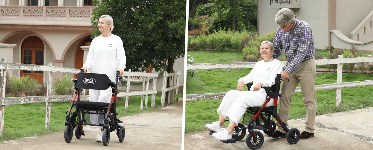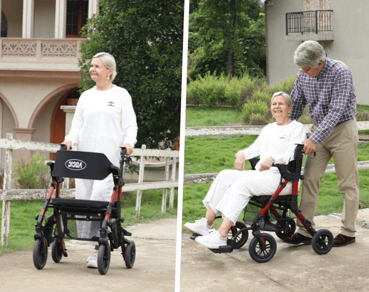 El VOCIC Z51 Shift Combo es una inteligente solución 2 en 1: funciona como un andador para caminar y se puede transformar en una silla de transporte cuando sea necesario.