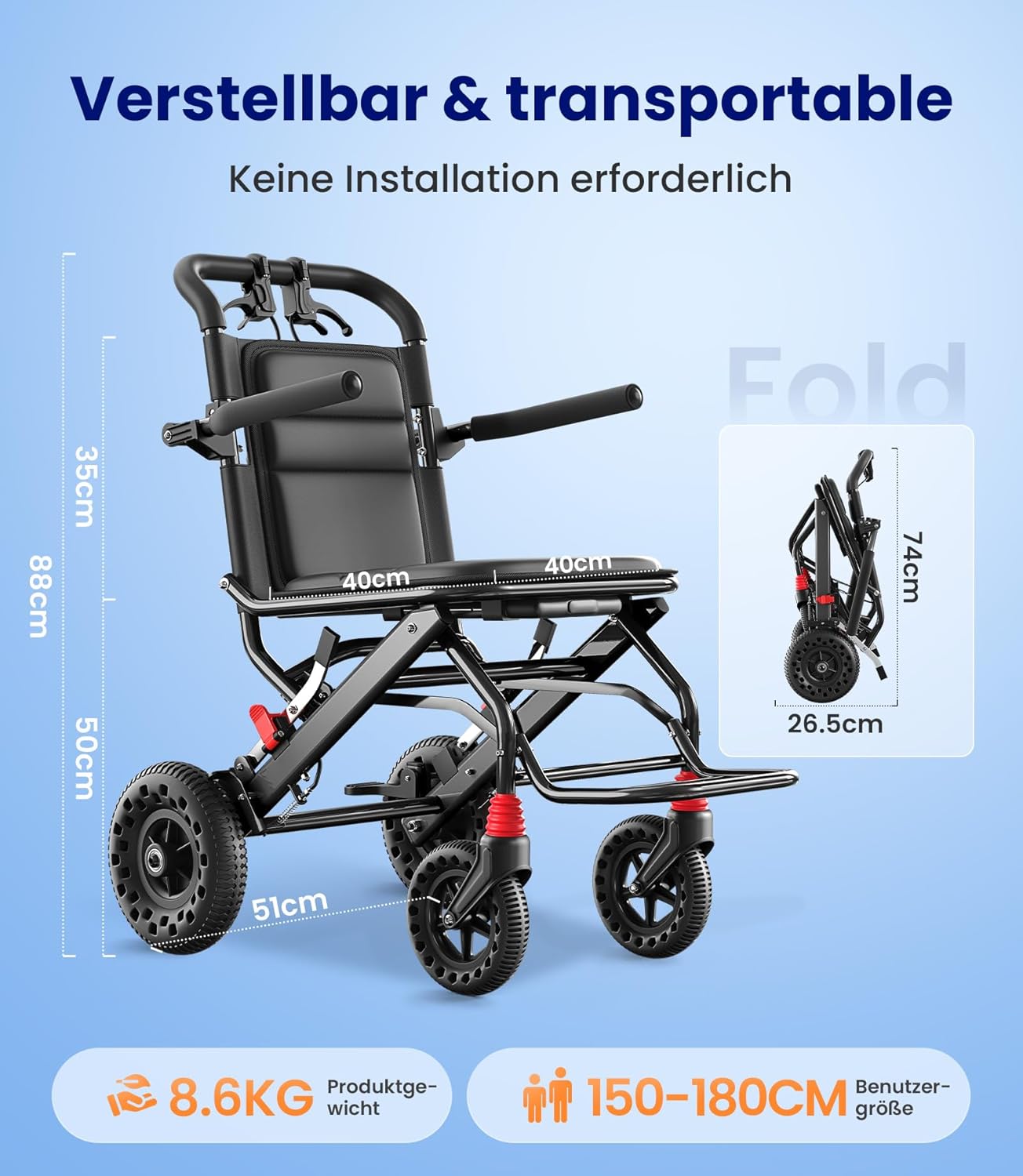 VOCIC U41 Rollstuhl Faltbar Leicht Aluminium Ultraleichter Reiserollstuhl
