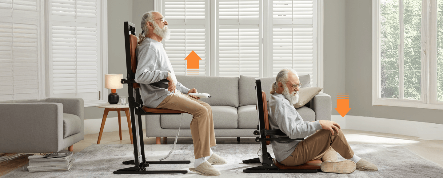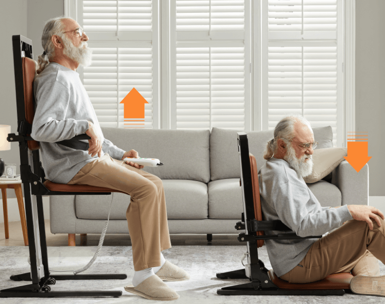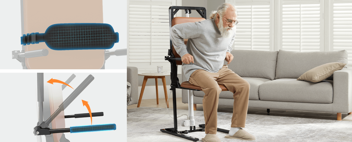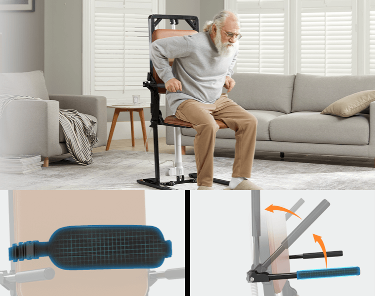 Das elektrische Aufstehhilfegerät verfügt über eine einfache Handsteuerung, die eine intuitive und komfortable Bedienung ermöglicht – ideal für Senioren.