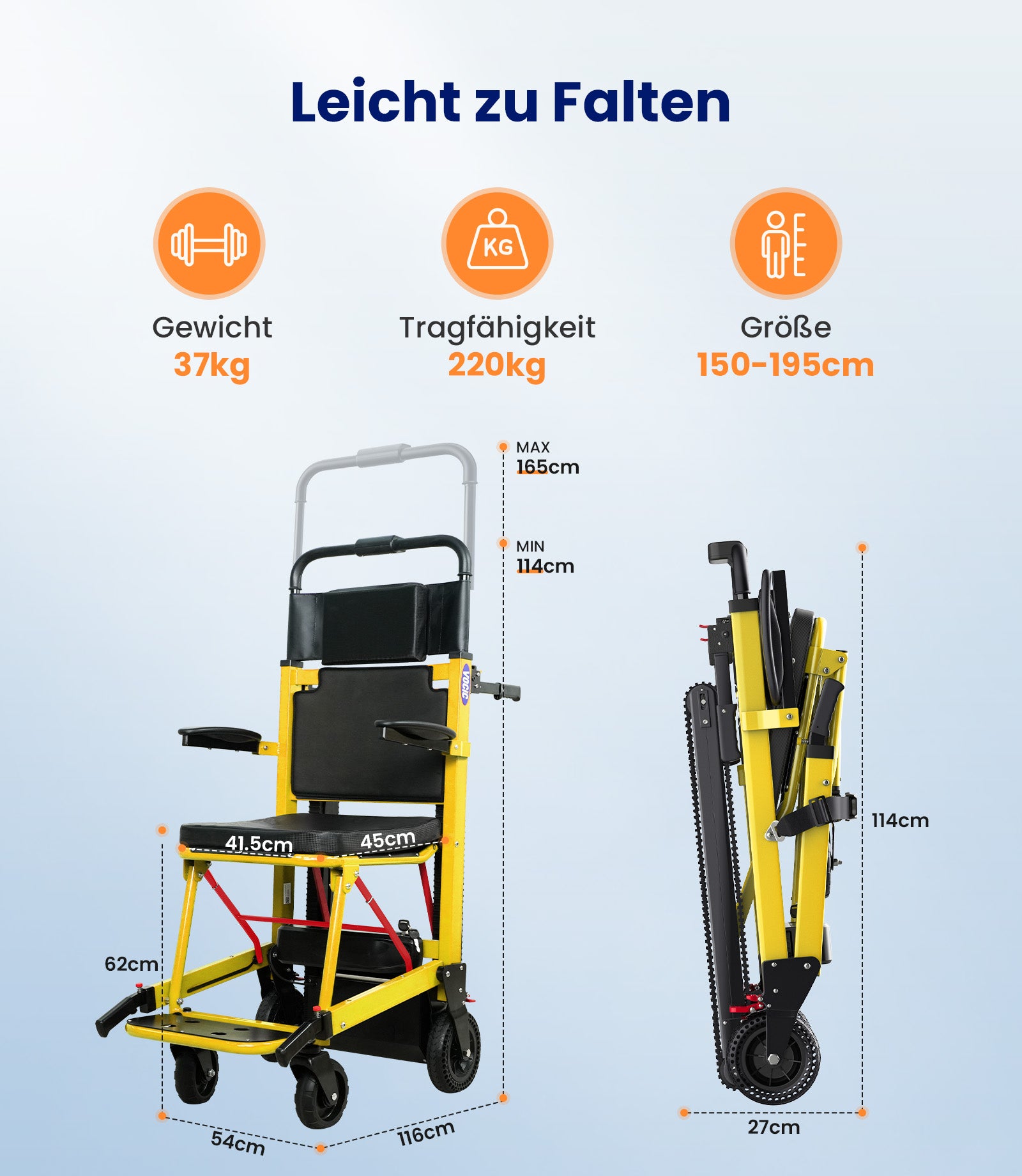 VOCIC Elektrischer Treppensteiger Rollstuhl Faltbar bis 220KG mit Gummikette AY04