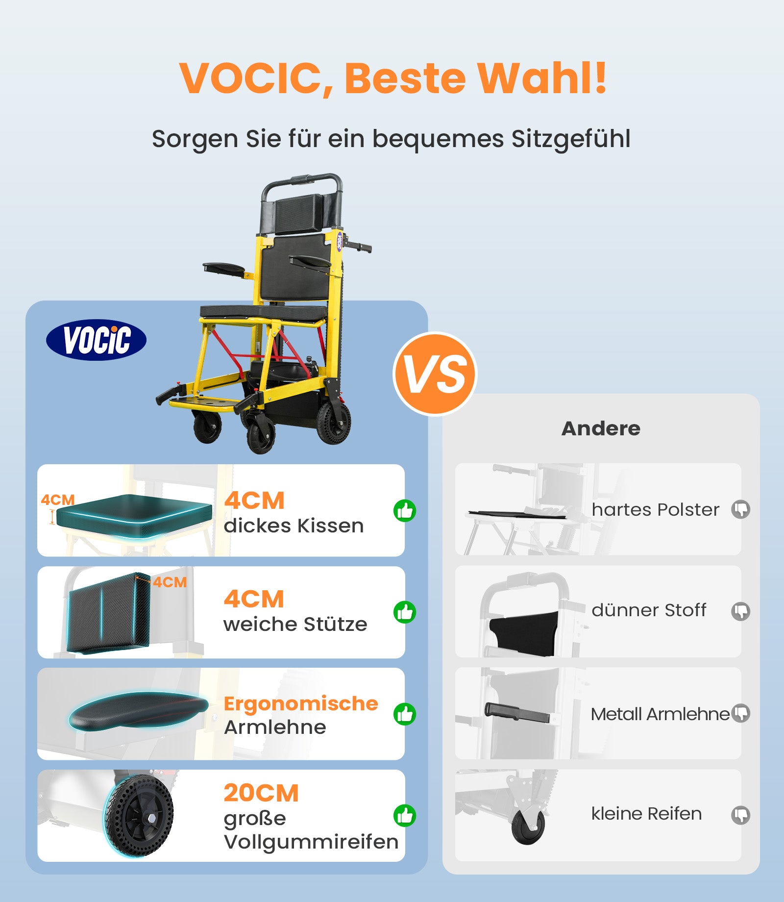 【Vielseitiges 3-in-1-Design】Der VOCIC AY04 kombiniert gleich drei Funktionen: als Treppensteiger, als Rollstuhl auf ebenem Untergrund und als Tragehilfe mit ausziehbarem Griff. Damit ist er für verschiedenste Alltagssituationen bestens geeignet
